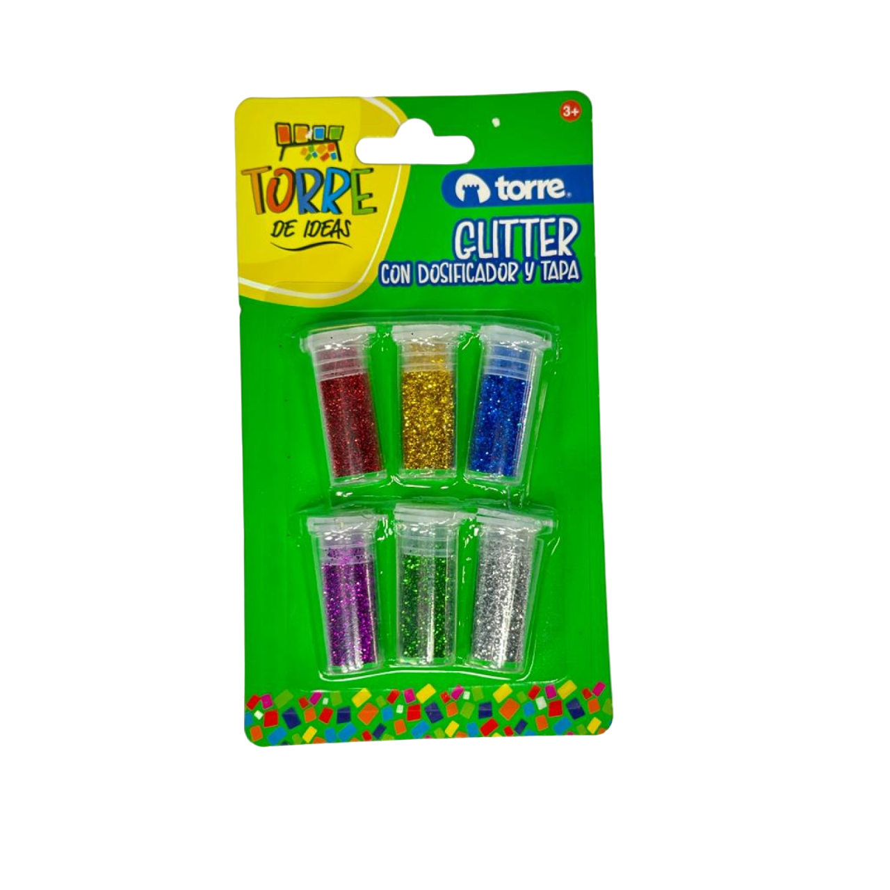 SET DE ESCARCHAS 6 COLORES CON DOSIFICADOR-TORRE