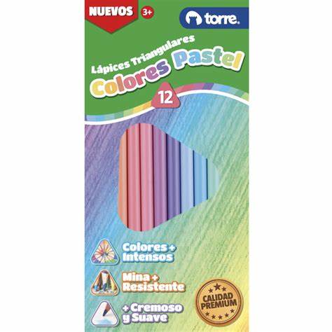 LAPICES PASTEL 12 COLORES TRIANGULARES-TORRE