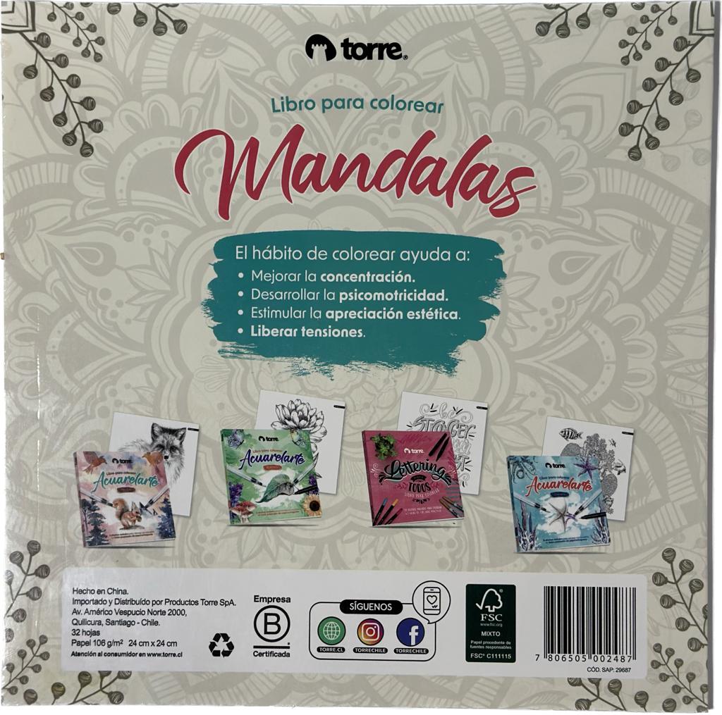LIBRO DE COLOREAR MANDALAS, 16 DISEÑOS VARIADOS–TORRE